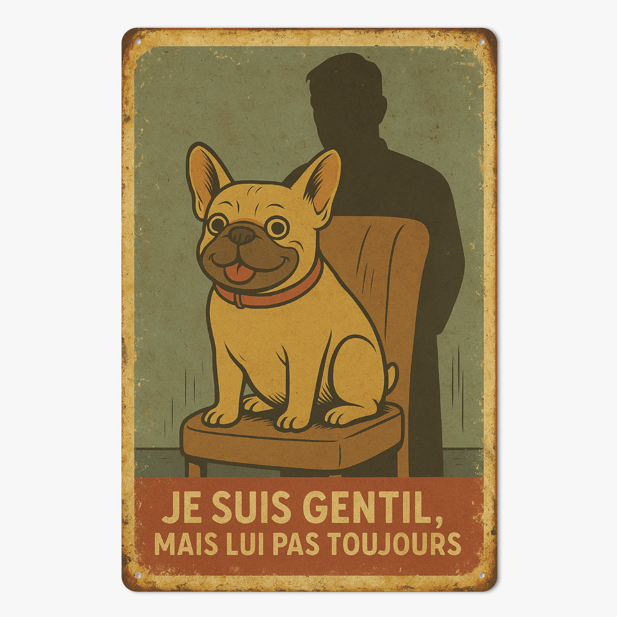 Apportez une touche d’authenticité à votre intérieur ou à vos espaces de vie avec cette plaque murale en métal de 20 x 30 cm. Conçue pour durer, elle est dotée de quatre trous pré-percés aux coins, vous permettant de l’accrocher facilement au mur selon vos envies.