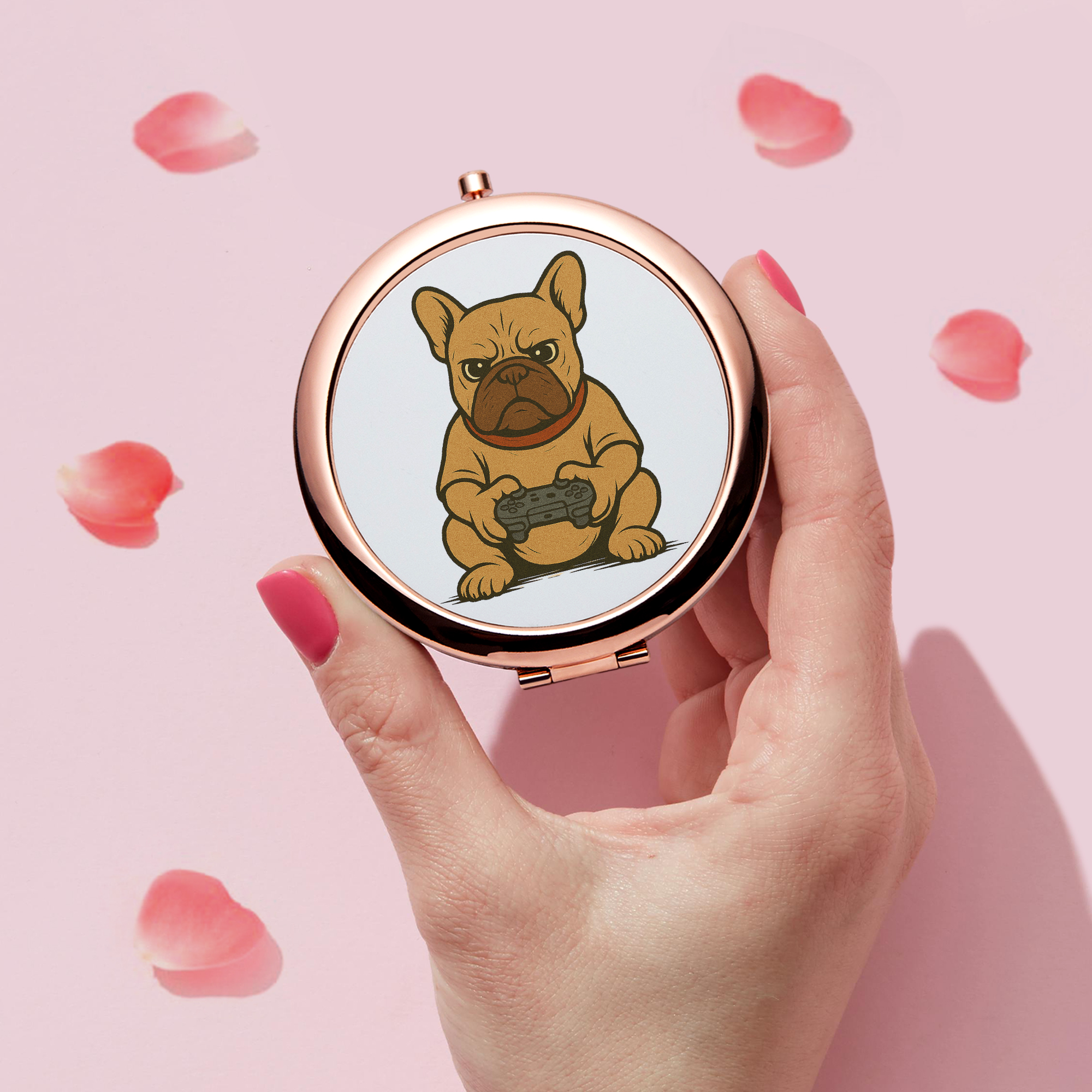 Emportez l’élégance partout avec vous grâce à de miroir de poche en métal. Léger, fin et pratique, il se glisse facilement dans un sac, une pochette ou même une poche.
