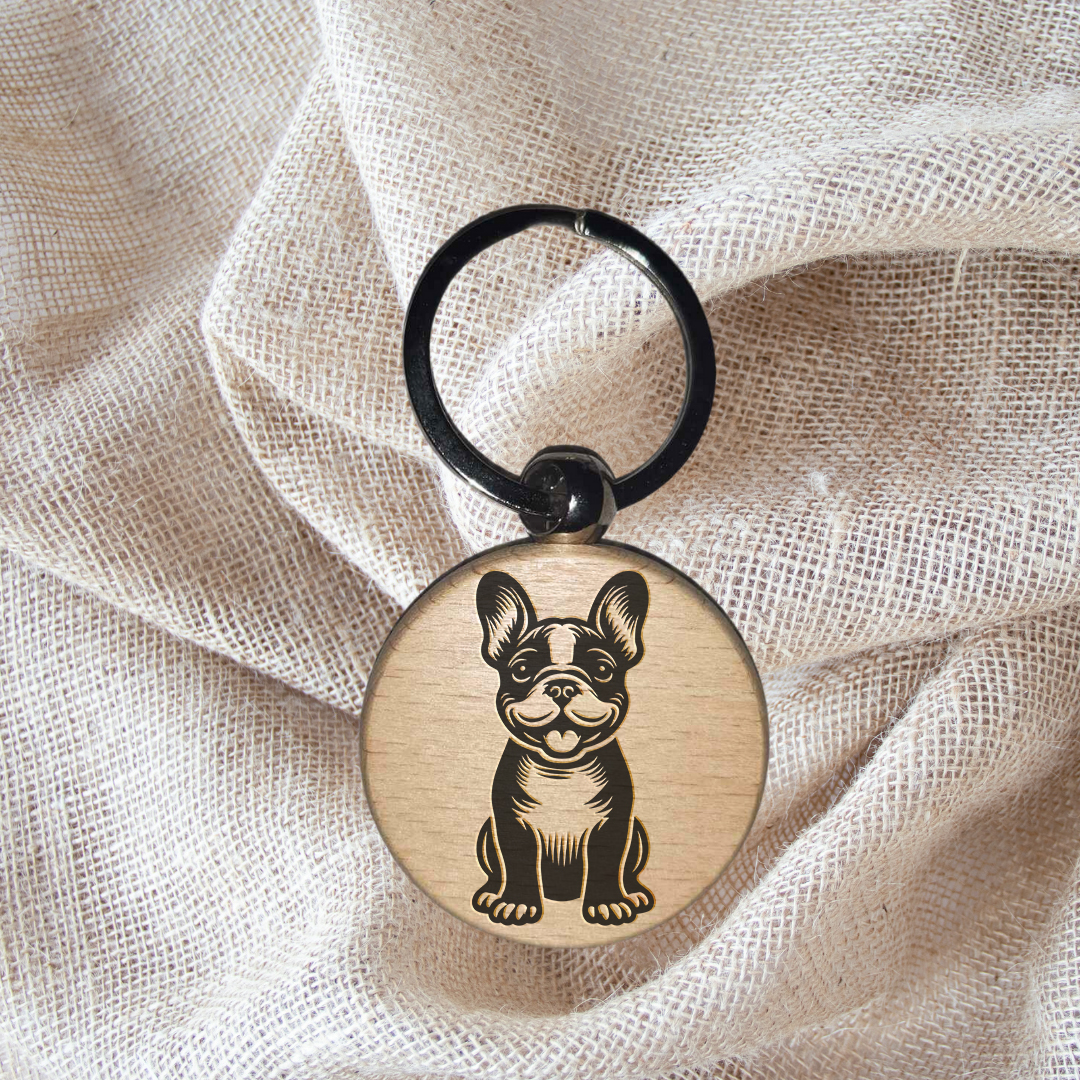 Ajoutez une touche personnelle à vos célébrations avec ce magnifique porte-clé en bois gravé, idéal pour les fans de boubous. Chaque porte-clé est soigneusement gravé avec un dessin de bouledogue français, offrant un cadeau à la fois chaleureux et mémorable.
